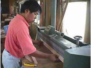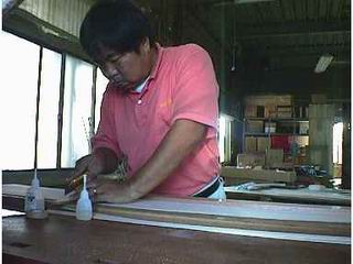 胴体を極限まで整形 使っているのは、横サンダーと言う木工機械です。 |