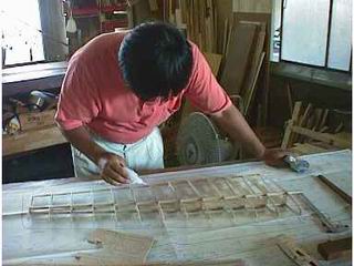 リブは0.5mmの桐の板をクロスに張り合わせて、 元型をボールペンで写して、カッターでカット |