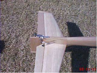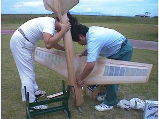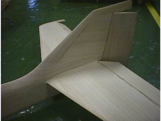 主翼をグラスで補強後、オラカバーの 透明で貼り、木目を生かした仕上がりにしました。 |