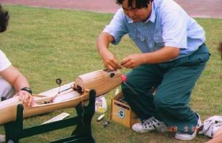 胴体は桐板を型抜きした後、内側を ルーターと言う木工機械で肉抜き |