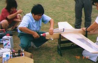 主翼の部材を切り出しているところです。 真剣な顔ですねーー |