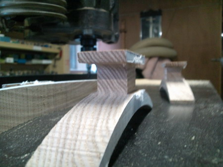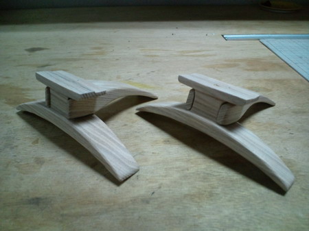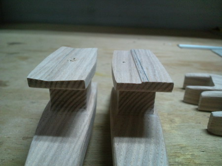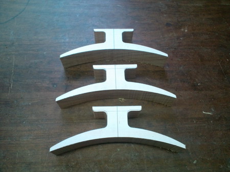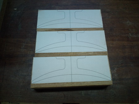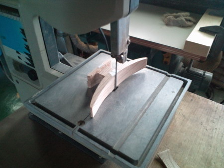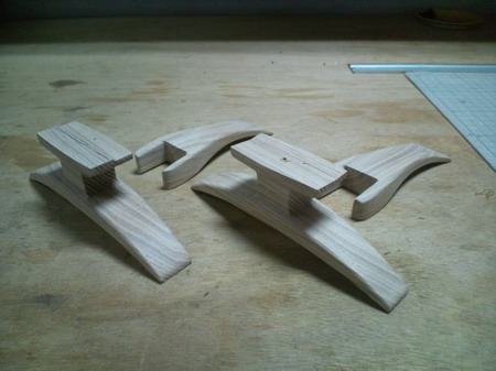 | イメージをCADで書いて、実寸でプリントアウトした後、木に貼りました。 | |