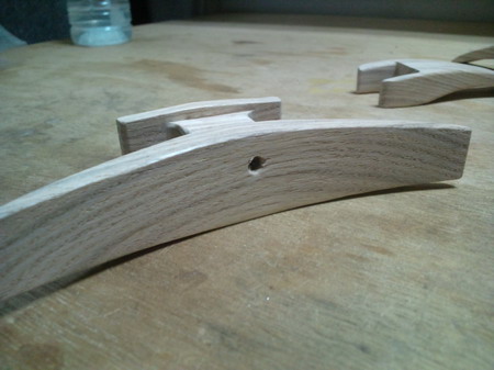 | 自立のピンを差し込み式にしているので、部材の頸の強度を確保する為に下からビスをねじ込んで、補強しておきます。 | |