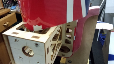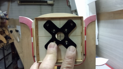 モーター苦労せずに取り付けました。 モーターステーのベニヤが8mmぐらいなので、爪付ナットによっては 厚みが足りません。 私は付属していた丸く開いたベニヤを後ろに接着しました。 あとで気付いたんですが、そのベニヤはウイング固定用なのかもしれません。 |