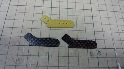 エレベーターが片引きなので、サーボホーンが1個足りないので カーボン板を同じようにカットして作りました。 |
