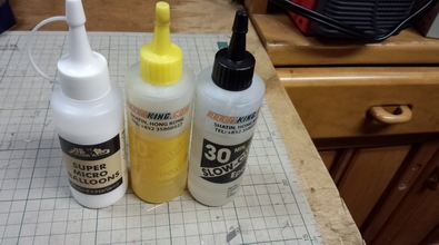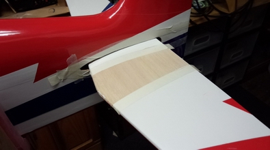 かなりエポキシの量がいるようなので、左のマイクロバルーンを混ぜ あと使った道具はドライヤーと綿棒です。 綺麗に仕上げるには、初めにエポキシを3mmぐらいの幅で片側に塗り、差し込んで5mmほど向こう側に出して、エポキシを5mm出た部分に塗った後、センターに戻して合わせる。 ドライヤーで温めながら、めん棒で余分なエポキシを取り隙間が有れば、綿棒で埋めるように詰めて、出来るだけ接着剤がのこらない様に取って、マスキングテープをジワッとはがすと出来上がり。 |