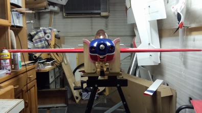 機体スタンドに置いて、肝心の胴体のねじれを確認すると、 きっちり、真っすぐ出来てます。 |
