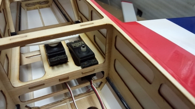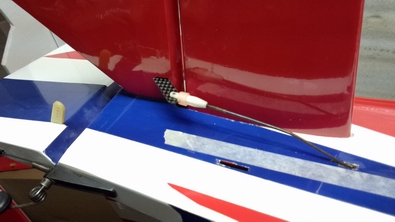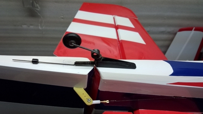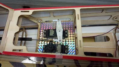 | ワイヤーリンケージと、エレベーターロッドが干渉しない様に サーボの枕は8mmにしました。 |