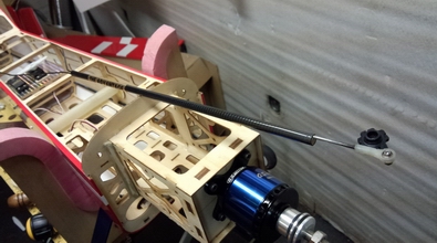 エレベーターが片引き設計だったので、後で微調整で癖がを出さない様に ロッドはこだわりのカーボンです。 ついでに、サーボホーン側はベアリング仕様です。 |