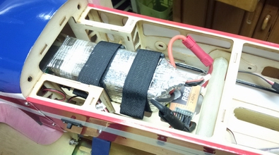 受信機の電池はカウル内に配置していましたが、前がかなり重いので、 新たに電池ペットを増設しました。 |