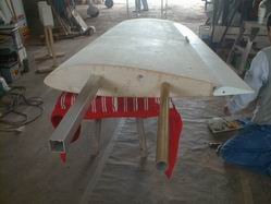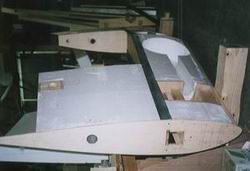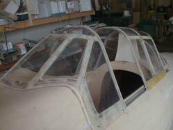 | キャノピーは、最初アルミで作る予定でしたが、 より実機感を出すためにさらにグラスで上張りし塗装 するそうです。又、開閉もします。 (アレッ、軽量化より、実機感優先ですネーー) |
