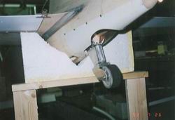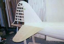 | 尾輪の取り付け部は、軽量化の為ガリガリ削ってあります。 お世辞にも綺麗とは言いにくい状態ですが、外から見える 部分でもないし飛行にも影響はないので妥協。 (職業は大工ですハイ) |
