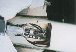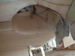 引き込み脚の部分のカットやジョイント部の加工 補強のためのカーボン60mm(黒く見えるのがT型カーボンロッド) とても加工が大変のようです。 |