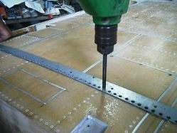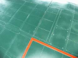 | いよいよ、リアル塗装開始 全体にグラスを張って張ったグラスに実機感を出すために、 タップ型を、付けていきます。 タップの位置決めは、プラモデルや図面を参考にしてます。