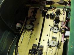 | 出入りはエアーでする予定でしたが、どうしても後ろが重いため 写真にある部品は、すべてはずしてサーボで出し入れする 事になりました。 |