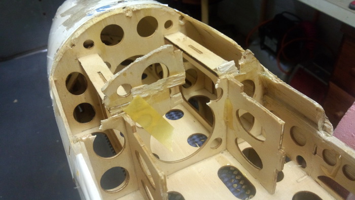 前の同枠の破材はかろうじて有ったのでそのまま接着しました。後の同枠は破材が無かったのでシナベニヤをカットして2枚張りにしました。 前後の同枠はこの段階ではまだ接着してません |