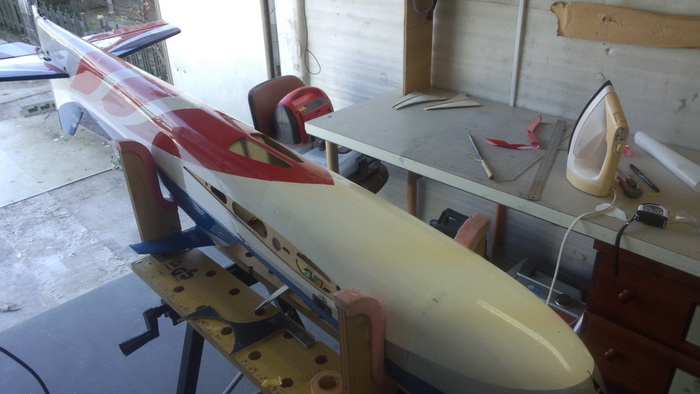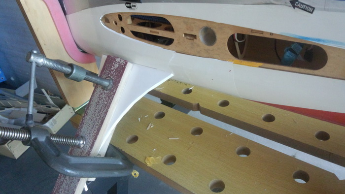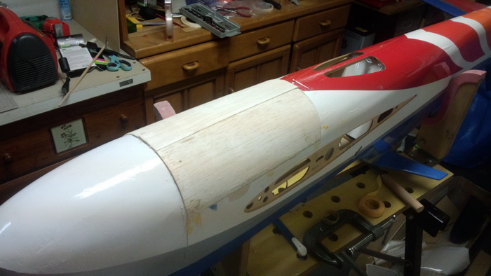 プランクしたバルサをペーパーで鳴らしてフイルム貼り |