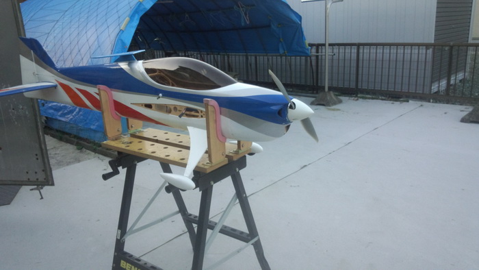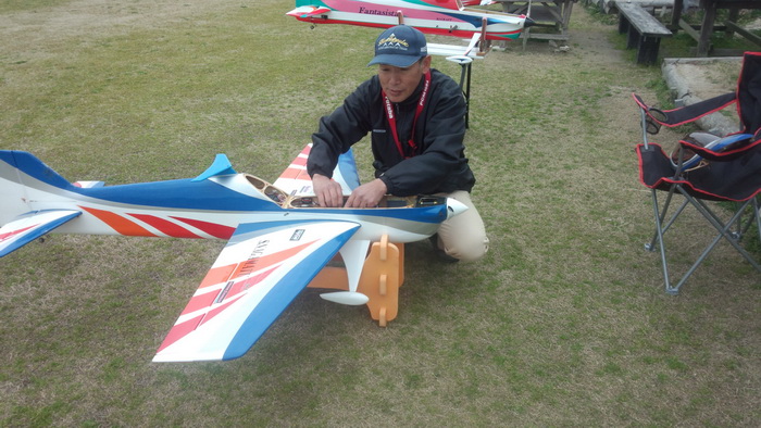 メカセッティングの確認後オーナーさんがテストフライトしました。 オーナーさんは大変喜んでくれました。 私も無事飛んで、無着陸も問題なく出来てホッとしました。 |